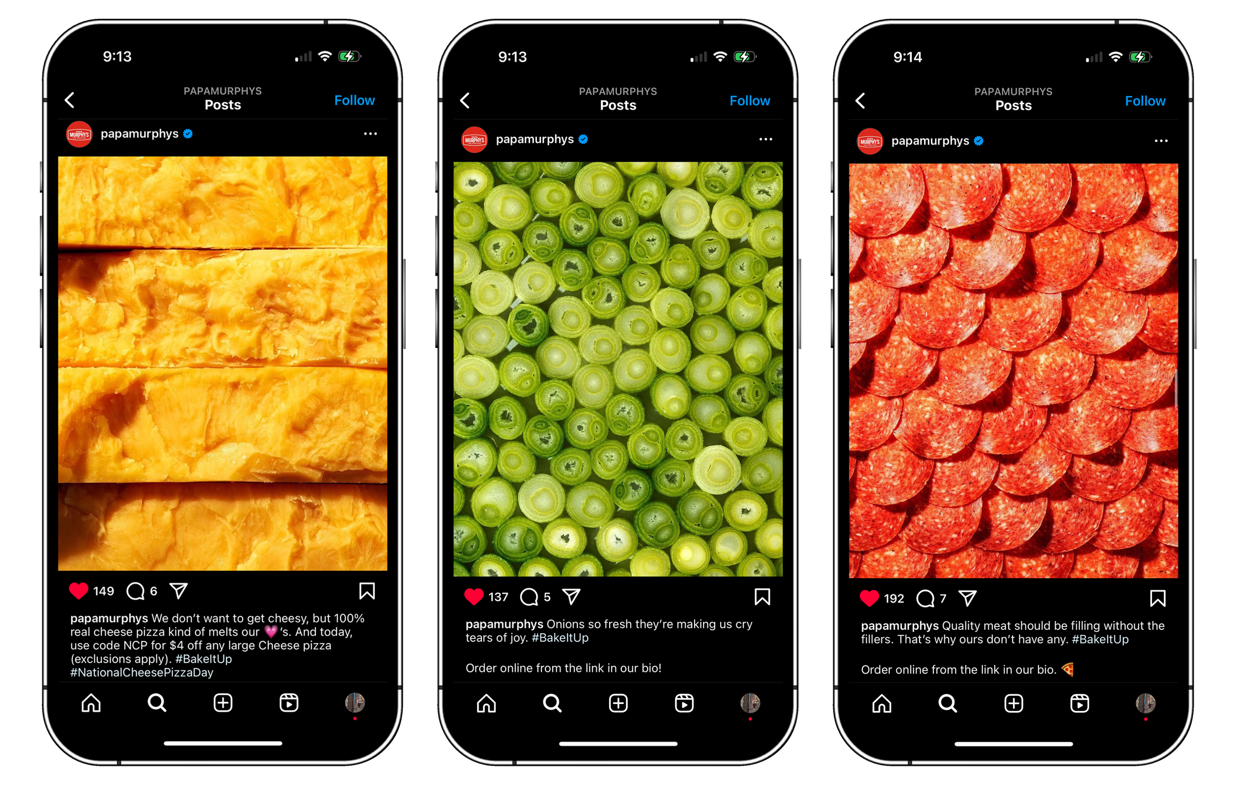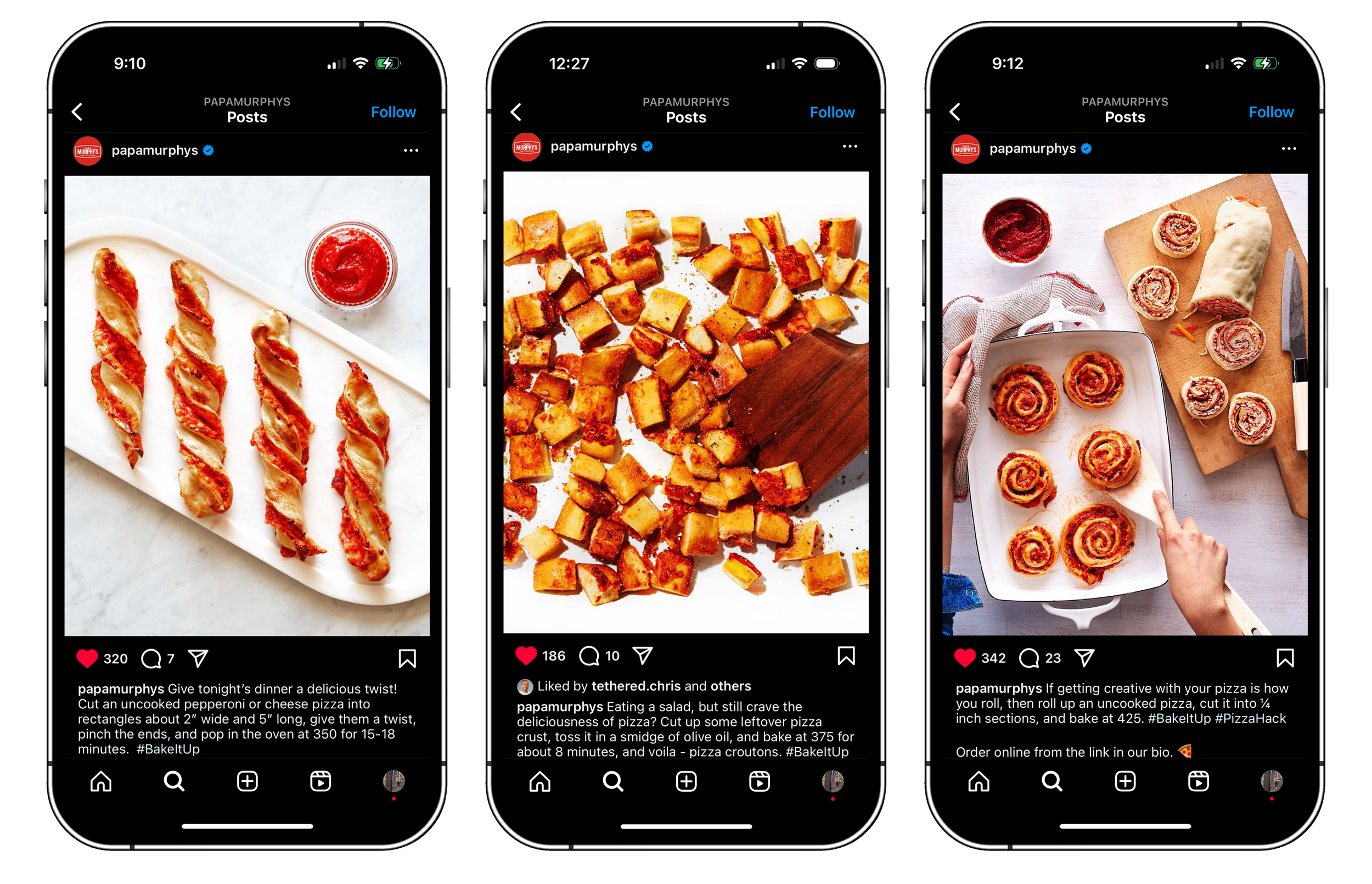 Appeal to a millennial audience by giving the Papa Murphyβs Instagram feed a glow up with content that looks as tasty as the pizza.
